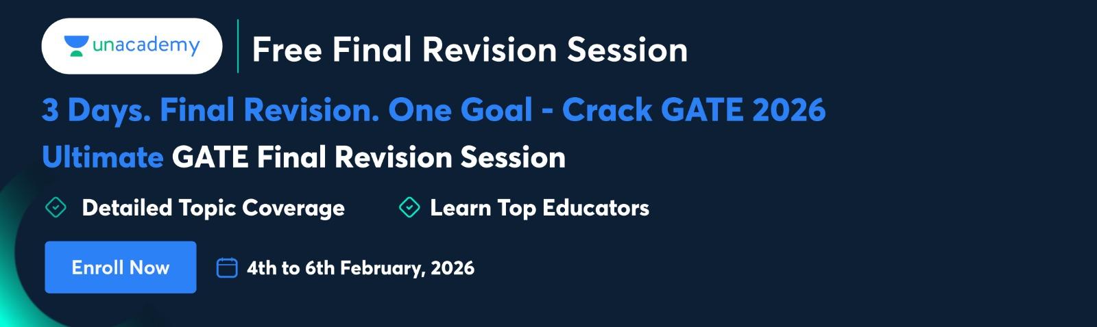 Wrap up your GATE 2026 preparation with a focused, high-impact revision led by India’s top educators. Revise smart, avoid common mistakes, and walk into the exam with confidence.
