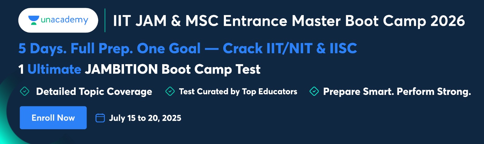 Get ready for an intensive 5-day Bootcamp curated for serious IIT JAM aspirants! Whether you're targeting IIT JAM & MSC Entrance Exams, this Bootcamp will help you master core concepts, sharpen problem-solving skills, and test your exam-readiness — all in one compact series.