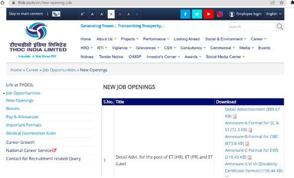 Step 1: Go to the official website for THDC India Limited, thdc.co.in, or tap on the THDC India Limited notification’s online application link that we have provided on this page.