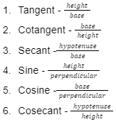 Trigonometric functions include six particular functions that derive the ratios we use for further calculations and other needs. There are six trigonometric functions: