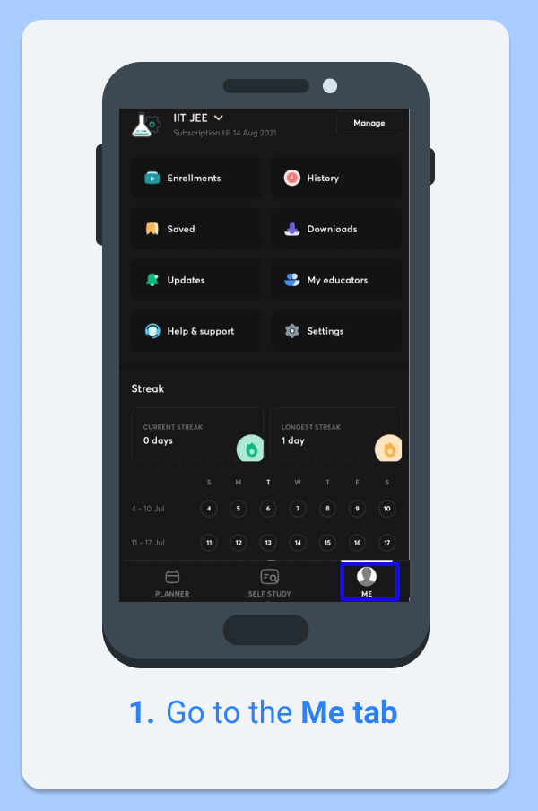 - Go to the Me tab
